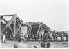 Herstellingswerkzaamheden aan de brug. Op 10 mei 1940 zou een Duitse pantsertrein via Venlo Nederland zijn binnengedrongen. Samen met de spoorbrug bij Venlo werd deze trein vernietigd.