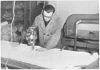Liberated Dutch civilians make snow suits for U.S. troops. A Dutch girl in a liberated area of Holland marks the pattern of snow suits on white cloth before it is cut. Civilians in the Netherlands, like French and Belgian civilians, are working for the Allied cause in factories and on the land. Those snow suits will be used by U.S. Army fighting men in snow-covered sectors of the Western Front.