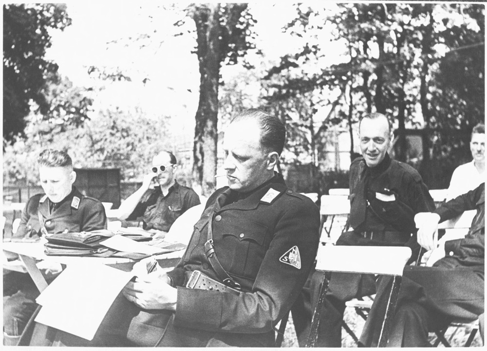 NSB propagandacursus te Maarssen, 12 en 13 juli 1941. 'Vol aandacht worden de uiteenzettingen gevolgd. Op de voorste rij van r. naar l. kameraad Voorhoeve en de hoofden der diensten Schriftelijke Propaganda, Foto, en Fotonieuws.' Op 12 en 13 juli 1941 organiseerde de afdeling Propaganda van de NSB in Maarssen een propagandakamp voor districtsleiders en districtpropagandaleiders van Musserts beweging. Het doel was verstevigen van het onderlinge contact en inzicht geven in moderne propagandatechnieken. Op 4 en 5 oktober 1941 vond in Beekbergen voor de tweede keer een propagandakamp plaats.