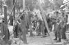 Inwoners drommen samen rondom een jeep met Canadese militairen op het Buitenhof, 8 mei. Menno Huizinga, 1907 - 1947, was een vakfotograaf die o.a bedrijfs- en reclamefotografie maakte. Zijn werk toont veel overeenkomsten met de nieuwe zakelijke fotografie uit de jaren 20 en 30. In de eerste oorlogsmaanden maakt hij pasfoto's voor de nieuwe Persoonbewijzen. Begin 1941 krijgt hij een baan bij de Luchtbeschermimg waar hij tot in 1944 blijft werken. Hierdoor kan hij met toestemming van de Duitsers overal reportages maken van bominslagen en verwoestingen. Zijn werk dient ook als dekmantel voor zijn werk voor het verzet. Vanaf eind 1943 werkt hij voor de verzetsgroep Packard. Al in 1941 begint Huizinga het leven in bezet Den Haag te fotograferen. In 1942 fotografeert hij de aanleg voor de Atlantik wall en de afbraak die daarvoor nodig is. In 1943 het kappen van het Haagse Bos, in 1944 Dolle Dinsdag. En in de winter de jacht op alles wat brandbaar was. Hij verbergt zij kamera, een Leica, in een kaaskistje waar een gaatje in gezaagd is. Tot slot fotografeert hij de bevrijding, de intochten en de feesten. In totaal onstonden ruim 700 foto's van het dagelijks leven in Den Haag.