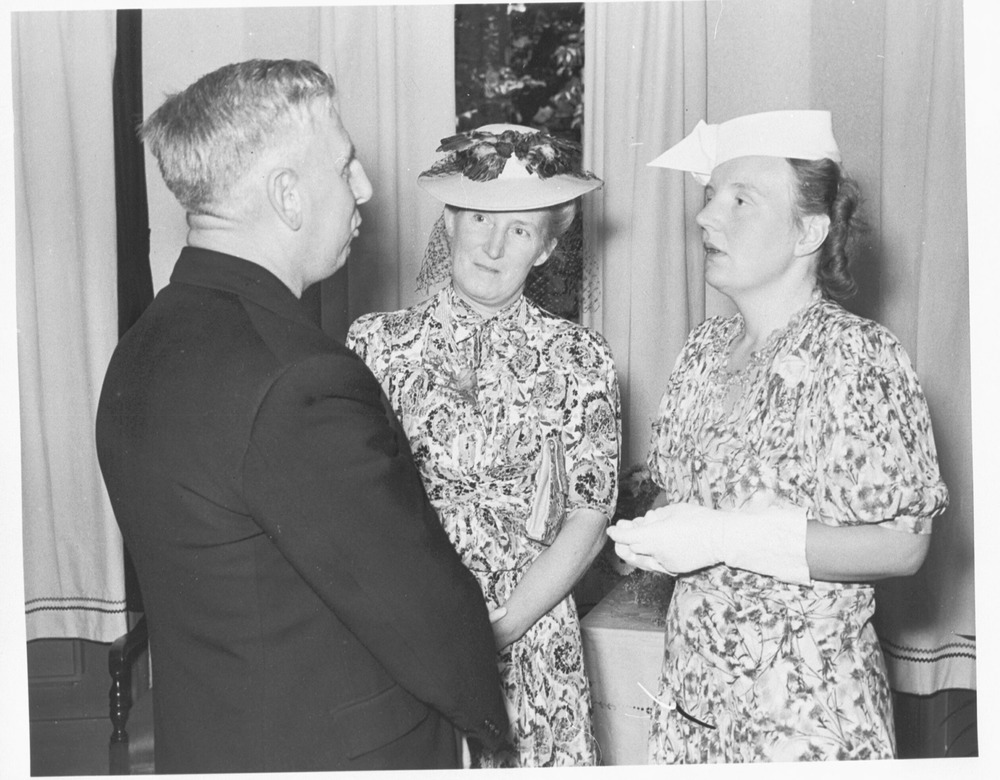 Begin juni 1940 vertrok prinses Juliana met haar beide kinderen aan boord van de kruiser Sumatra naar Canada. Het door een Duitse invasie bedreigde Engeland kon de kroonprinses en haar beide dochtertjes niet voldoende veiligheid bieden. In januari 1943 werd prinses Margriet geboren. De bevolking in bezet gebied nam met grote vreugde kennis van het nieuws. Foto's van prinses Juliana en de drie prinsesjes werden, ondanks het verbod van de Duitsers, in grote oplage in omloop gebracht. Familiekiekje Canada.