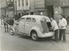 Foto van een ambulance op de Nieuwezijds Voorburgwal in Amsterdam. Op de achtegrond het oude Telegraaf gebouw aan de Nieuwezijds Voorburgwal.