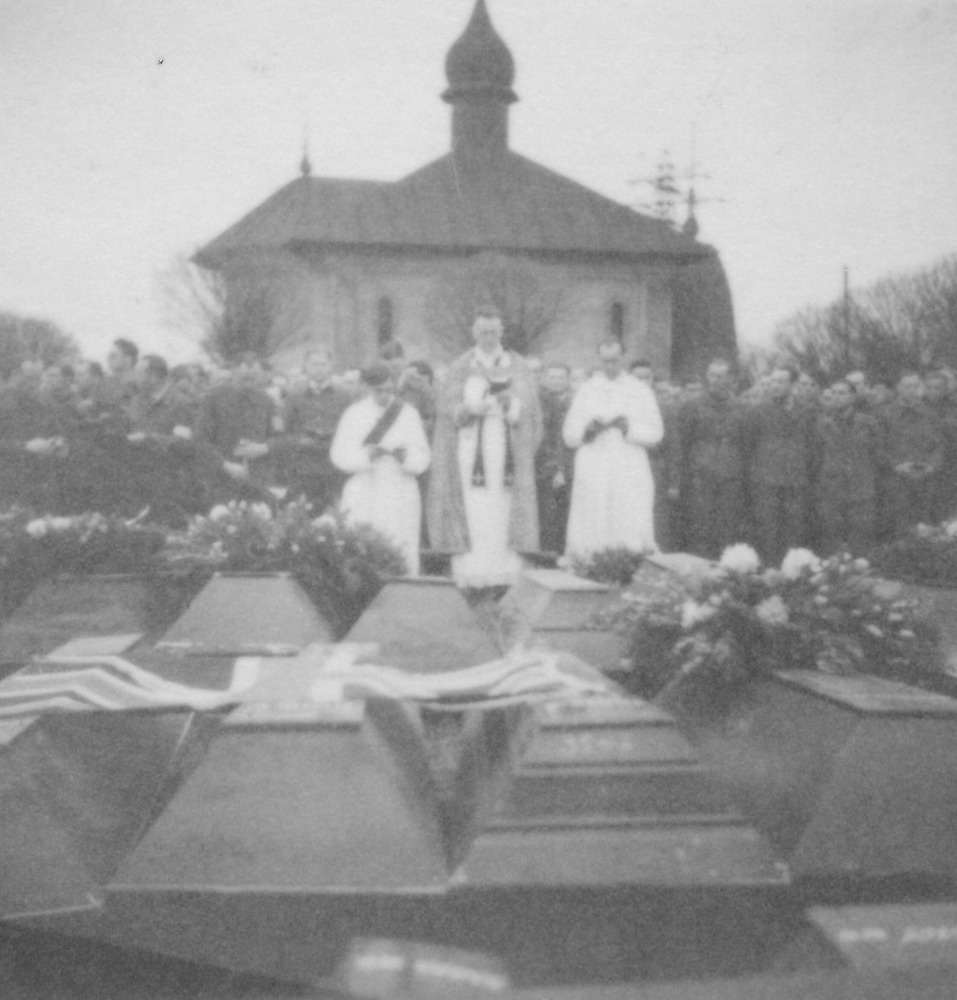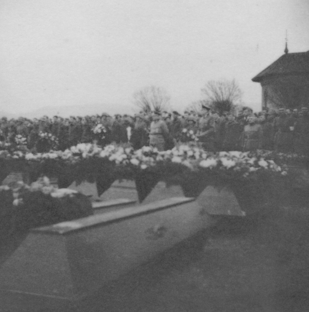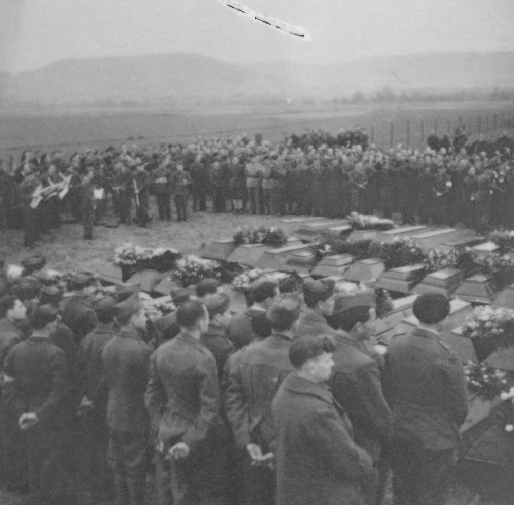 Begrafenissen van krijgsgevangenen in Brüx. Sudetenländische Treibstoffwerke Brüx,complex in Brüx (nu Most in Tjechië).