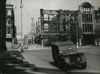 Een verwoest pand op de hoek van de Stoeldraaierstraat en de Vismarkt. Er ligt puin op straat.
