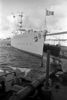 Onderzeeboten Hr.Ms. O 16 en Hr.Ms. O 11 in Amsterdam, 1938. Op de achtergrond Hollandia aan het IJ, Valkenweg.