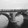 Sint Servaasbrug de Duitse noodbrug, waarmee de brug in 1940 tijdelijk weer bruikbaar gemaakt werd voordat de vernielde ...