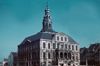 'Zuid Nederland. Stadhuis, Maastricht. 18-9-44.' Juichende mensen vieren de bevrijding voor het stadhuis van Maastricht. 18 september 1944.