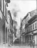U.S. troops enter Andernach, Germany. Two soldiers of the 11th Armored Division, Third U.S. Army, carry a wounded comrade (lower right) to a safety zone as an American tank halts at the head of this narrow street in Andernach, Germany, before a flaming Nazi vehicle it has just knocked out. Andernach, on the Rhine River, about nine miles northwest of Coblenz, was captured by Third Army units March 8, 1945, during the northward drive to link up with First U.S. Army forces. It was the first city on the Rhine taken by Third Army units.