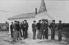 Czech tourist office becomes a funeral chapel. Crowd of sympathisers examining window display at Czech tourist office. The French words are: Frenchmen, Czechoslovakia descending to the tomb, cries to you: 'íf wou lost forty divisions you still have eleven million friends.