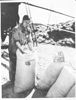 Gathering Germany's first peacetime harvest. German forehands stack sheaves of wheat in a field in Honau, Germany, in the Seventh U.S. Army sector. In the background, a reaper cuts the crop, the first to be gathered a peacetime Germany in six years.