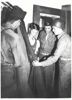 Revival of the Passion Play. Otto Rutz, who plays the part of Simon (left), talks with another character in the Passion Plat---The Hogh Priest Caiphas, ......... by Hugo Rutz (not related). Hugo runs a blacksmith shop in the village.