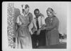 The Group of ex-Lancashire workers watch... tapestry artists at work; left to right: Corporal Ste....