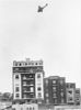 Das Ende eines britischen bombers über Le Havre. Unsere sensationellen Aufnahmen zeigen in drei Phasen den Abschuss eines britischen Bombers vom Type Brisol - Blenheim, der in französisches Gebiet einzufliegen versuchte, durch deutsche Jäger über der französischen Hafenstadt Le Havre. Auf unserem ersten Bild ist der englische Bomber bereits getroffen. Die rechte Tragfläche ist schwer beschädigt.