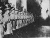 Troops guard courthouse as jury returnes verdict in Hauptmann trial. The solid line of New Jersey State troopers guarding the Hunterdon County Court as the jury returned their verdict.