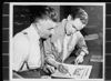 Stars and Stripes, G.I. Morale Booster No. 1. The managing editor of the London edition, Sergeant Pete Lisagor (left), formerly of the Chicago Daily News, comfers with Coast Guardsman Bill McElvain of Decatur, Illinois, on a story describing the work o f the Navy in the ETO for a proposed special edition. While Stars and Stripesfound most its readers in foxholes and in fighter plpanes and bombers, it also serves the neb in blue on deck and ashore. Like Coast Guardsman McElvain, public relations officers of various naval bases visit the Stars and Stripes office and supply whatever information the editors require. They also tip the editors on approaching new breaks. For instance, a phone call from a Troop Carrier PRO in the Winter of 1944 brought a reporter to ocover the dropping of supplies to the besieged U.S. forces at Bastogne.