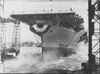 New U.S. aircraft carrier wasp is launched. The Wasp, the U.S. Navy's newest aircraft carrier, slides off the launching ways at an Eastern U.S. shipyard (August, 1943). The seventh Wasp to serve in the U.S. Navy, the fightinh ship will replace her immediate predecessor, which was sunk off Gaualcannal in the South Pacific. Sept. 15, 1943. Miss Julia M. Walsh, sister of U.S. Senetor David L. Walsh, chaiman of the Naval Affairs Committee, sponsored the ship.