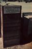 Detail entree schuilkelder, met zand verstevigde houten bak, waarop een bordje met politieverordening.