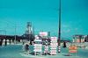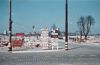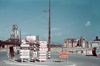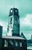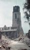 Richtingaanwijzers met Duitse teksten. Op de achtergrond veel puin, de spoorbrug en een eenzame kerktoren