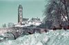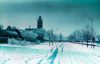Wilhelminasingel en kathedraal. De straat bedekt door een flink pak sneeuw.