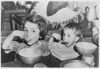 Italian children get U.S. food. Two Italian children find the food given them in Naples by the U.S. Army entirely to their liking. The Americans set up my food centers for the needy Italian population immediately after the liberation of Naples.