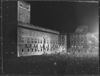Hier fand die Bekräftigung der Freundschaft Berlin-Rom statt. Während die beiden grossen Staatsmänner, der Führer und der Duce am Sonnabend, 7.5. auf einem grossen Staatsbankett, das der italinienische Regierungschef zu Ehren der deutschen Gäste im Palazzo Venezia veranstaltete, die unwandelbare Treue und unlösliche Verbundenheit und Zusammengehörigkeit der beiden grossen Völker aufs neue bekräftigen, hatten sich draussen auf dem Piazza Venezia hunderttausende einfgefunden, die den beiden Staatsmännern bei ihrem Erscheinen zujubelten. Hier der festlich angestrahlte Palazzo Venezia; davor die jubelnde Menschenmenge.
