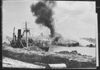 Americans celar wreckage from Civitavecchia harbor. Smoke rises from a dynamite blast touched off by U.S.