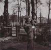 Foto van militair in Brits uniform (Nederlandse tweede luitenant) voor serre van een huis.