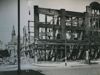 Foto van beschadigde en uitgebrande huizen, uiterst rechts warenhuis, naam: 'H.H. Meijerling'.