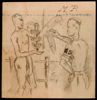 Twee tekeningen op een vel; onderdeel van een serie tekeningen van onder andere Bram Veugel, Appie Brauckman, P.