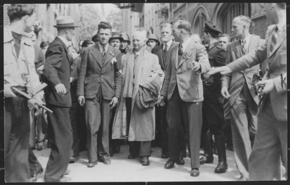 Arrestatie Max Blokzijl, propagandaleider en één van Nederlands bekendste collaborateurs.