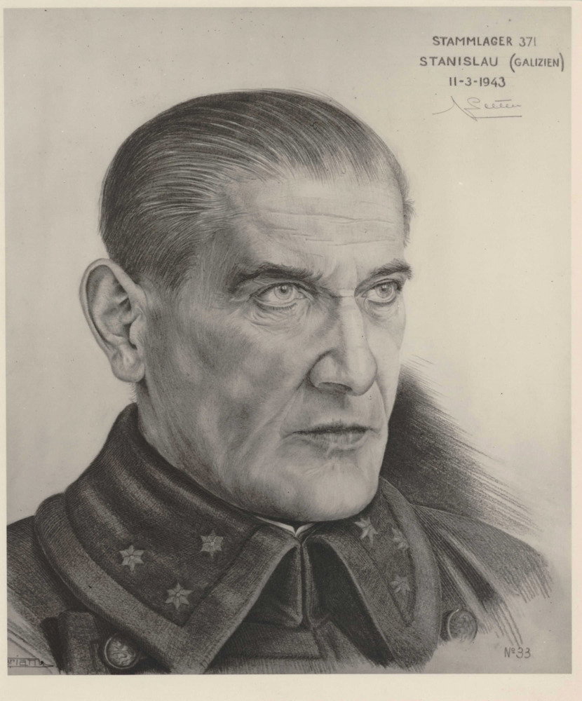 Tekening uit krijgsgevangenkamp Stanislau tekst: `M-Stammlager Stanislau-(Galizien) 22-1-1943'; (a.z.) Lt. kolonel C. Lifeerink ? Collectie foto's (12) van portrettekeningen (12).
