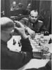 Eine Stude der Entspannung. Während der Reise durch das Verwaltungsgebiet spielt Dr. Frank eine Partie Schach im Zuge.