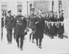 Le séjour à Paris du Roi George de Grèce. Le Souverain hellène s'est rendu ce matin sur la Tombe du Soldat Inconnu, et déposé une gerbe. Le quittant l'Arc de Triomphe, en compagnie de M. Politis, Ministre de Grèce à Paris, et du Général Gouraud, Gouverneur Militaire de Paris.
