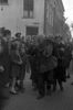 Collectie foto's (negatieven) afkomstig van de 'Filmdienst der Binnenlandsche Strijdkrachten Gewest 13, District Delft'. Betreft in hoofdzaak de periode kort voor, tijdens en direct na de bevrijding. Bevrijding. BS'ers brengen een gearresteerde NSB'er of collaborateur op naar het Armamentarium.