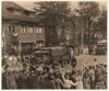 Bevrijding Leiden Intocht van de Canadezen. Een militaire truck, waarschijnlijk van de Prinses Irenebrigade, rijdt door de Breestraat. Rechts twee agenten van politie. Een militaire truck, waarschijnlijk van de Prinses Irenebrigade