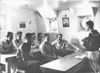Sie schützen die Schiffe. Männer der Bordflak auf deutschen Handelsschiffen. Keine Stunde bleibt ungenützt. Während oben die Posten Ausguck nach allen Richtungen sichern, wird für die abgelöste Mannschaft Unterricht im Erkennen von Flugzeugtypen abgehalten.
