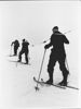 Blaujacken machen einen Skiausflug. Der Schnee ist schon nach einstündigem Steigen erreicht. Jetzt werden die Bretter angeschnallt, um auf das Gulfjeld zu gehen.