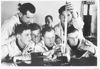 Bilder aus einer Marineschule von den Lehrgängen der Laufbahn II. Motorenkunde-Chemie: Arbeiten an Oelprüfungsapparaten.