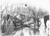 Südlich des Ilmensees. Verwundete werden auf Schlammrutschen zum Truppenverbandsplatz transportiert.