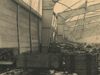 Gefotografeerd vanuit een kadekraan, de ontzette muren en stalen dakdragers, detail van het in- en exterieur van een pakhuis aan de Lloydkade dat werd beschadigd tijdens het Engels bombardement van 28 juni 1942 Foto uit een serie van tien over de Lloydkade te Rotterdam na het bombardement door een Engels squadron op 28 juni 1942. Het betreft afbeeldingen van schade aan gebouwen.