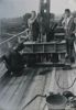 Werknemers van Gusto Staalbouw doende met pneumatsche hamers op het wegdek van de vernielde verkeersbrug te Kelpen Foto uit een album met 114 foto's betreffende de werkzaamheden door Gusto Staalbouw aan diverse in 1940 vernielde dan wel verwoeste objecten zoals spoor- en verkeersbruggen en een sluis. De werkzaamheden aan de spoorbrug Moeselbrug en Sluis No. 16 in de Zuid-Willemsvaart bij Weert en aan de twee spoorbruggen (kanaal Wessem-Nederweert) en de verkeersbrug in Kelpen worden uitgebreid in beeld gebracht.