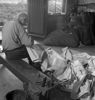 Zeilmakerij Volendam. Deze foto maakt onderdeel uit van de collectie van Emmy Andriesse (1914-1953), een van de meest gerenommeerde fotografen van Nederland. Na afronding van haar studie verhuisde zij naar Amsterdam, waar ze ging werken als fotograaf. Andriesse leverde veel foto's aan kranten en tijdschriften die zich kenmerkten door het gebruik van verrassende camerastandpunten en voorliefde voor diagonale beeldopbouw. De onderwerpen waren ambachten, landschappen en het leven van volwassenen en kinderen in steden en dorpen. Dit kon zij doen tot het zogenaamde ‘Journalistenbesluit’ van de Duitse bezetter in 1941. Als Jodin kon zij niet werken of publiceren en moest onderduiken. Eind 1944 regelde de bevriende antropoloog Arie de Froe een vervalste ariërverklaring voor haar en kon zij weer aan het publieke leven deelnemen. Ze sloot zich aan bij het illegale fotografencollectief ‘De Ondergedoken Camera’. De foto's die Andriesse onder moeilijke omstandigheden maakte van de Hongerwinter in Amsterdam, behoren tot de meest indringende uit haar oeuvre.