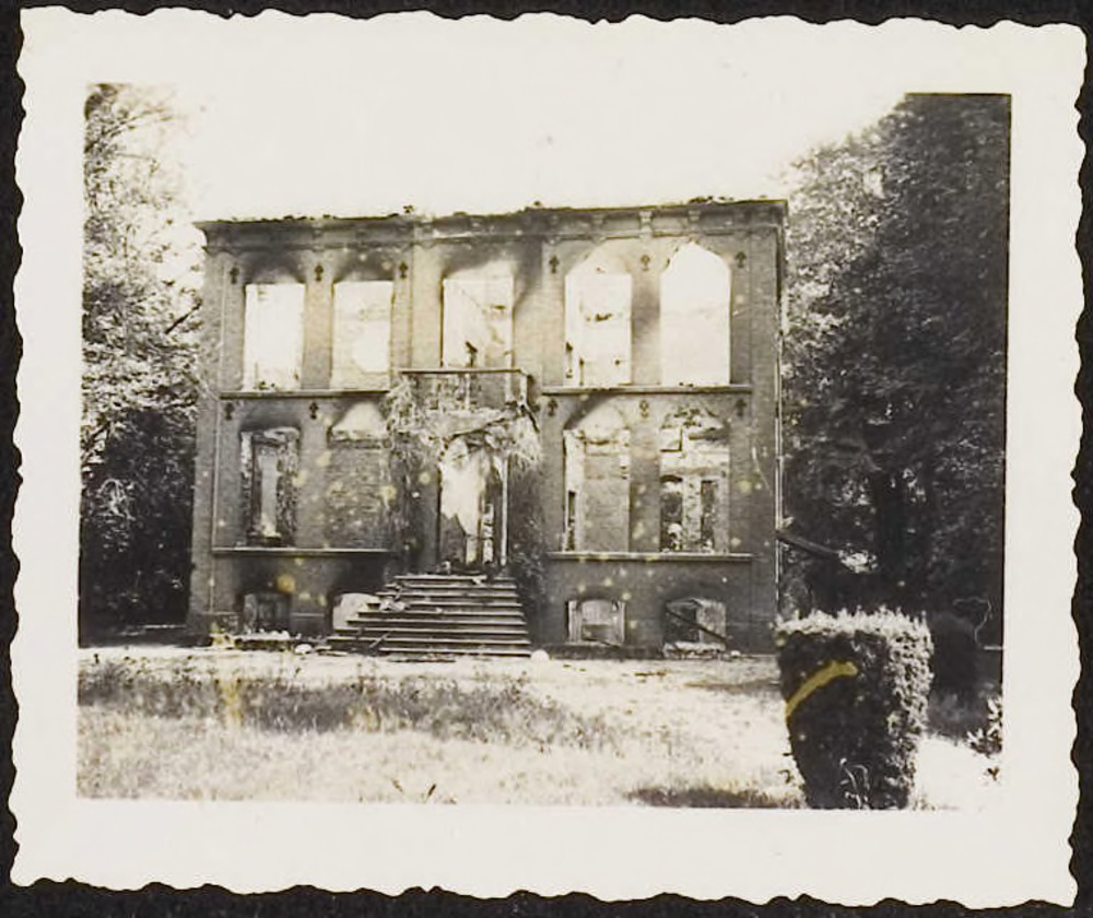 Tusschen Renswoude en Scherpenzeel; wat er overbleef van een huis, na een voltreffer. (Ned. Artillerie).