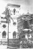 De kathedraal te Manila met 't gedenkteken van één der eerste Spaanse missionarissen.