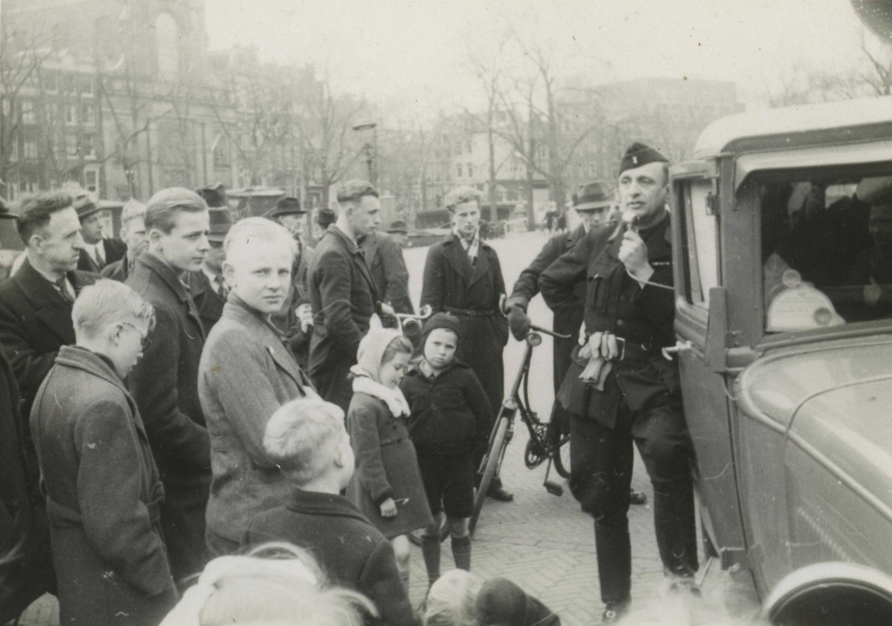 Actie van de NSB: ' Strijd om Amsterdam' op het Amstelveld, voorheen een vooral joodse markt. De actie liep van 04-03-1944 tot 13- 06-1944. Cino, G.H. 1894 – 1967. Cino werkte sinds midden jaren ’20 voor Het Leven. In december 1940 was Cino lid geworden van de NSB. Het Leven werd eind 1941 opgeheven en in juli 1942 krijgt Cino een baan bij de Fotodienst der N.S.B. Zijn foto’s verschijnen in Volk en Vaderland, Fotonieuws, de Zwarte Soldaat en Storm SS. Op 28 mei 1945 werd hij gearresteerd.