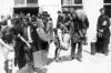 Na de Tweede Wereldoorlog. Nederlandse krijgsgevangenen keren in 1945 - na een lange treinreis vanuit Duitsland - terug in Nederland en worden door padvinders geholpen met het dragen van de bagage. Plaats en datum onbekend.