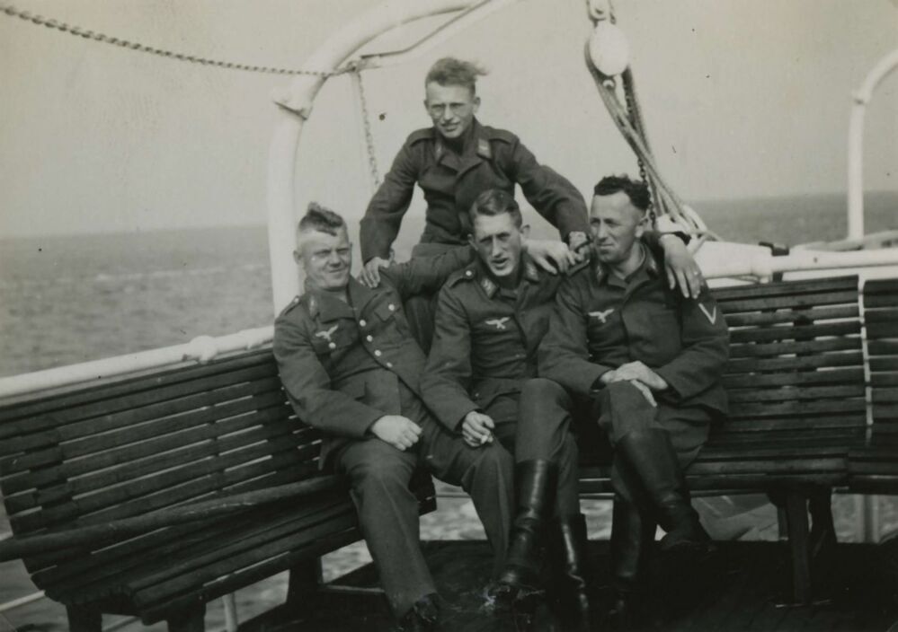 Foto ingeplakt in fotoalbum, Duitse Luftwaffe soldaten tijdens de bezetting
