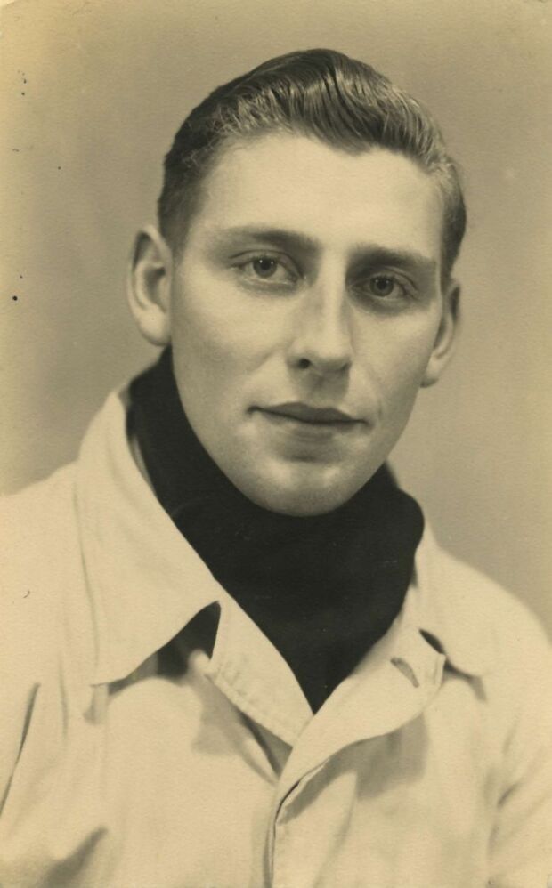 Een portretfoto van Frans van de Voorde. Hij was Sturmmann bij de Sicherheitsdienst (S.D.) in Heerenveen. Zij voerden op Crackstate een schrikbewind.