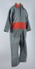 Zelfgemaakte rok van rode katoen met een gesjabloneerd wit vismotief, dat zeven keer herhaald wordt. De jurk heeft een lengte tot boven de knie en sluit door middel van een ritssluiting. De jurk is gemaakt in de omgeving van M.W.H. (Tiny) Bruls (21 februari 1916 – 16 december 2013). Tijdens de bezetting was zij thuiswonend, in Schinnen. Zij werkte in het café van haar ouders, die tien kinderen hadden. (De vader was naast caféhouder timmerman.) Ondanks de oorlogsomstandigheden was er geen ernstig gebrek aan voedsel, maar het tekort aan textiel was nijpend. Het is niet bekend of de rok rond de bevrijding (medio september 1944) gedragen is.