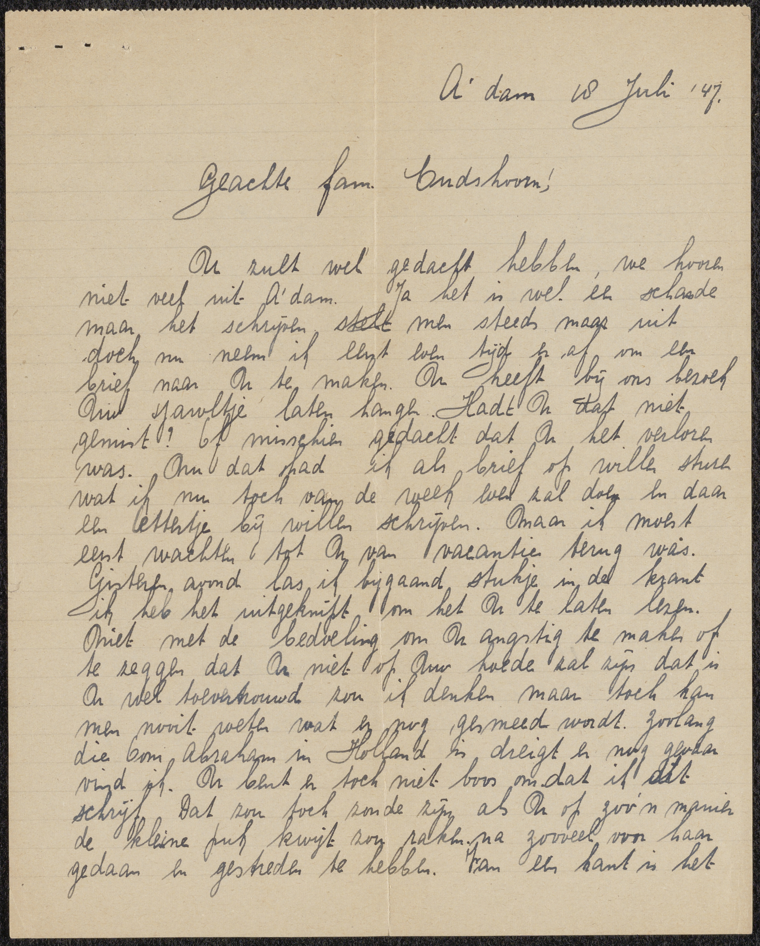 Van: Aan: Waarde familie Plaats: Datum: Onderwerp: omstandigheden